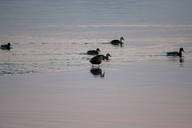 하늘이 핑크색으로 변하고, 물결에 색이 비친다.